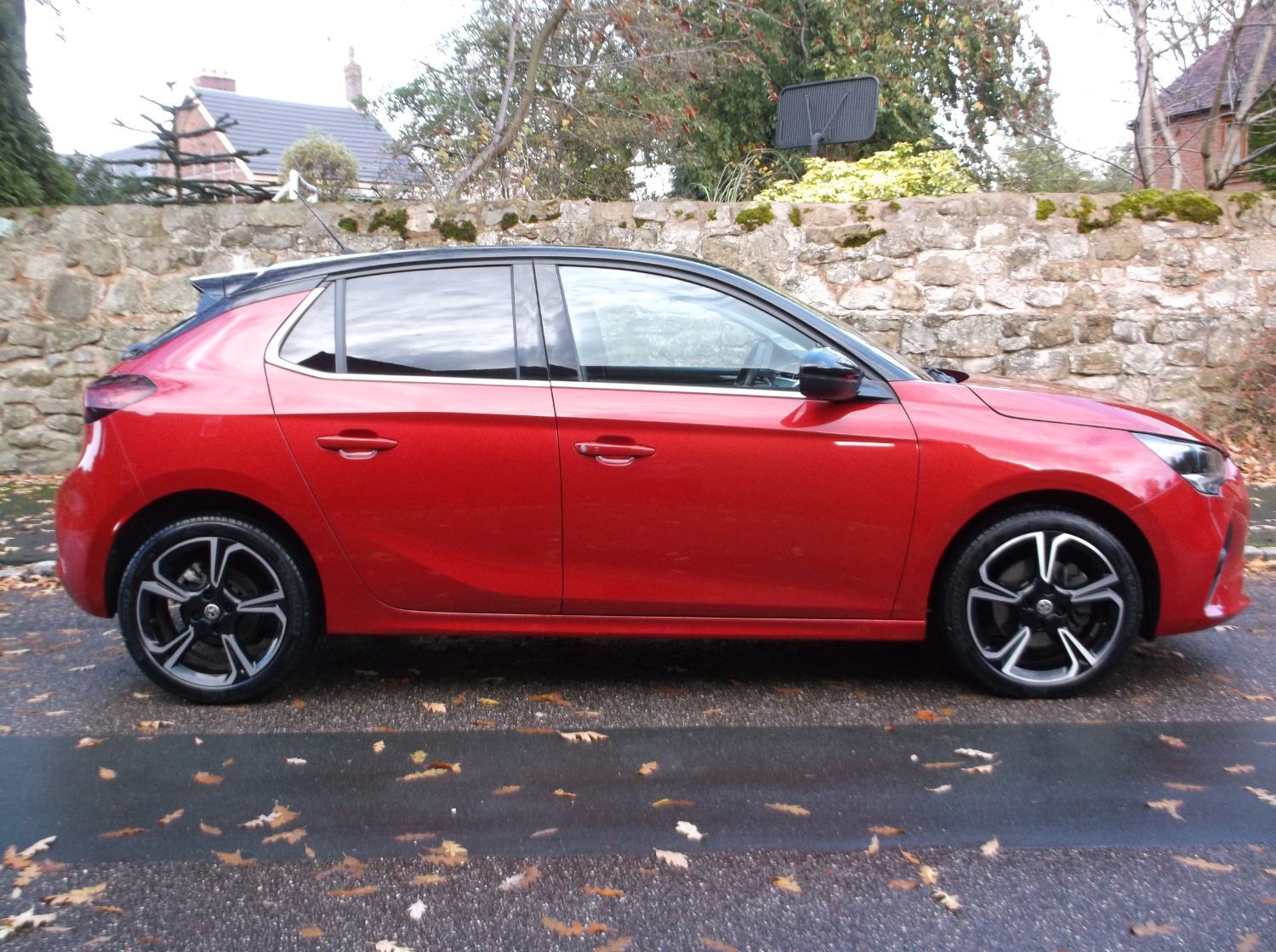 Vauxhall Corsa 1.2 turbo Elite Nav Premium finished in Crimson Red metallic with a Black Diamond Roof.